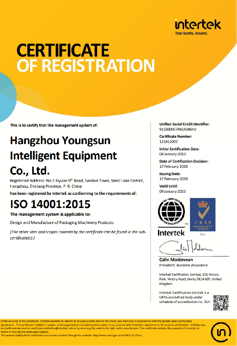 “Youngsun is one of the few companies that can independently design, manufacture, install and debug, and is a leading company in China's packaging industry. We have the independent research and development, independent design, manufacturing, installation and debugging capabilities of packaging equipment.